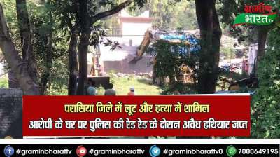 परासिया जिले में लूट और हत्या में शामिल आरोपी के घर पर पुलिस की रेड, रेड के दोरान अवैध हथियार जप्त