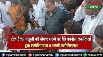 टोल टैक्स वसूली को लेकर धरने पर बैठे कांग्रेस कार्यकर्ता, ट्रक एसोसिएशन व डग्गी एसोसिएशन
