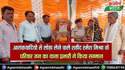 आतंकवादियो से लोहा लेने वाले शहीद रमेश मिश्रा के परिवार जन का थाना प्रभारी ने किया सम्मान