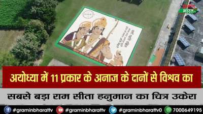 अयोध्या में 11 प्रकार के अनाज के दानों से विश्व का सबसे बड़ा राम सीता हनुमान का चित्र उकेरा