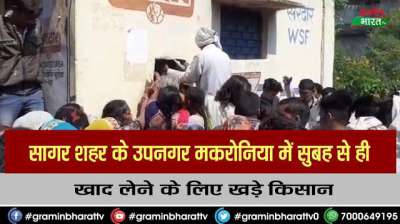 सागर शहर के उपनगर मकरोनिया में सुबह से ही खाद लेने के लिए खड़े किसान
