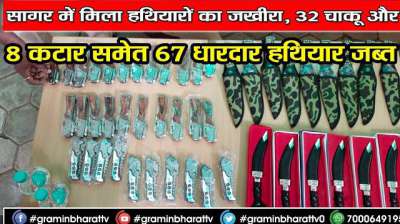 सागर में मिला हथियारों का जखीरा, 32 चाकू और 8 कटार समेत 67 धारदार हथियार जब्त