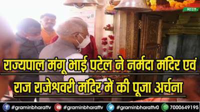 राज्यपाल मंगू भाई पटेल ने नर्मदा मंदिर एवं राज राजेश्वरी मंदिर में की पूजा अर्चना