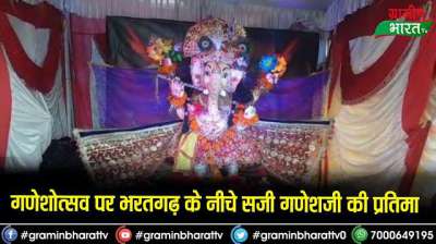 गणेशोत्सव पर भरतगढ़ के नीचे सजी गणेशजी की प्रतिमा