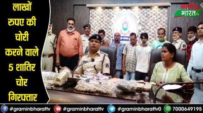 लाखों रुपए की चोरी करने वाले 5 शातिर चोर गिरफ्तार