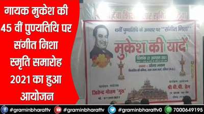 गायक मुकेश की 45 वीं पुण्यतिथि पर संगीत निशा स्मृति समारोह 2021 का हुआ आयोजन