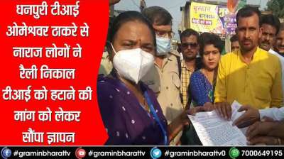 धनपुरी टीआई ओमेश्वर ठाकरे से नाराज लोगों ने रैली निकाल टीआई को हटाने की मांग को लेकर सौंपा ज्ञापन