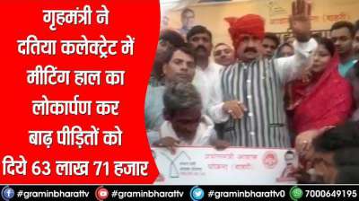 गृहमंत्री ने दतिया कलेक्ट्रेट में मीटिंग हाल का लोकार्पण कर बाढ़़ पीड़ितों को दिये 63 लाख 71 हजार