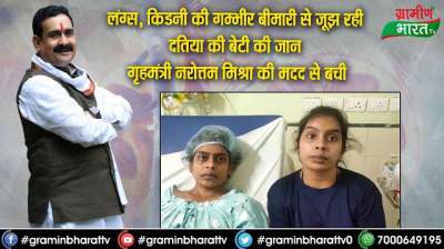 लंग्स, किडनी की गम्भीर बीमारी से जूझ रही दतिया की बेटी की जान गृहमंत्री नरोत्तम मिश्रा की मदद से बची