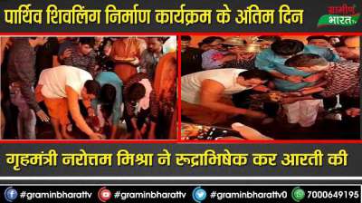 पार्थिव शिवलिंग निर्माण कार्यक्रम के अंतिम दिन गृहमंत्री नरोत्तम मिश्रा ने रूद्राभिषेक कर आरती की