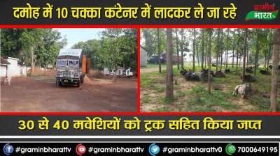 दमोह में 10 चक्का कंटेनर में लादकर ले जा रहे 30 से 40 मवेशियों को ट्रक सहित किया जप्त