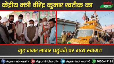 केंद्रीय मंत्री वीरेंद्र कुमार खटीक का गृह नगर सागर पहुंचने पर भव्य स्वागत