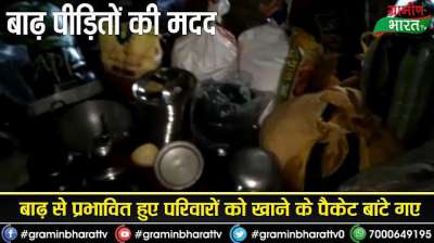 बाढ़ पीड़ितों की मदद बाढ़ से प्रभावित हुए परिवारों को खाने के पैकेट बांटे गए
