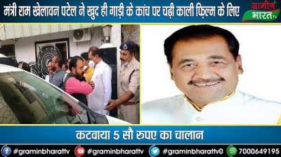 मंत्री राम खेलावन पटेल ने खुद ही गाड़ी के कांच पर चढ़ी काली फ़िल्म के लिए कटवाया 5 सौ रुपए का चालान