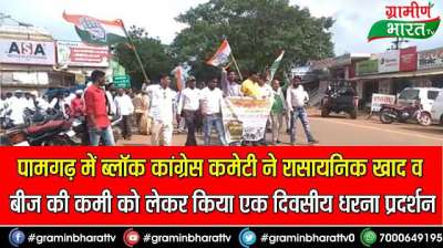 पामगढ़ में ब्लॉक कांग्रेस कमेटी ने रासायनिक खाद व बीज की कमी को लेकर किया एक दिवसीय धरना प्रदर्शन