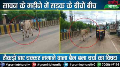 सावन के महीने में सड़क के बीचों बीच सैकड़ों बार चक्कर लगाने वाला बैल बना चर्चा का विषय