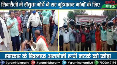 सिंगरौली में सँयुक्त मोर्चे ने सर मुंडवाकर मांगों के लिए सरकार के खिलाफ अनहोनी रूपी मटके को फोड़ा