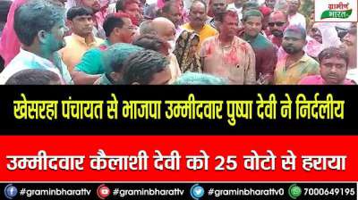 खेसरहा पंचायत से भाजपा उम्मीदवार पुष्पा देवी ने निर्दलीय उम्मीदवार कैलाशी देवी को 25 वोटो से हराया
