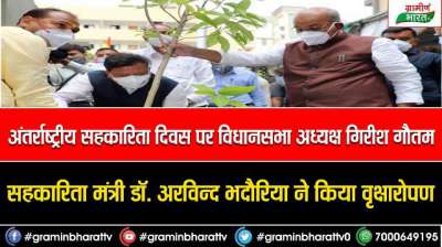 विधानसभा अध्यक्ष गिरीश गौतम, सहकारिता मंत्री डॉ. अरविन्द भदौरिया ने किया वृक्षारोपण