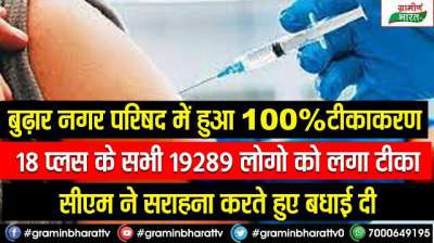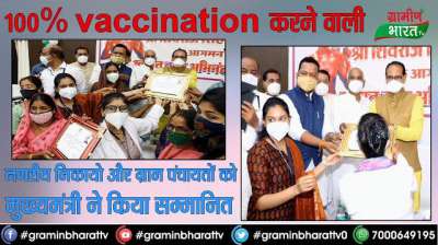 100% vaccination करने वाली नगरीय निकायो और ग्राम पंचायतों को मुख्यमंत्री ने किया सम्मानित