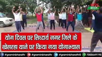 योग दिवस पर सिध्दार्थ नगर जिले के खेसरहा थाने पर किया गया योगाभ्यास