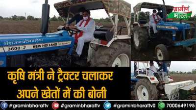 कृषि मंत्री ने ट्रैक्टर चलाकर अपने खेतों में की बोनी