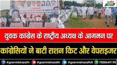 युवक कांग्रेस के राष्ट्रीय अध्यक्ष के आगमन पर कांग्रेसियों ने बाटी राशन किट और वेपराइजर