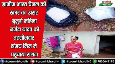 ग्रामीण भारत चैनल की खबर का असर बुजुर्ग महिला नर्मदा यादव को तहसीलदार संजय मिंज ने पहुचाया राशन