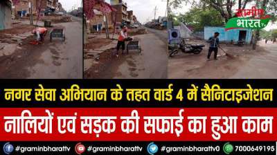नगर सेवा अभियान के तहत वार्ड 4 में सैनिटाइजेशन,नालियों एवं सड़क की सफाई का हुआ काम