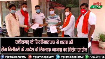 छत्तीसगढ़ के शिवरीनारायण में शराब की होम डिलीवरी के आदेश के खिलाफ भाजपा का विरोध प्रदर्शन