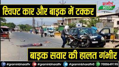 स्विफ्ट कार और बाइक में टक्कर, बाइक सवार की हालत गंभीर