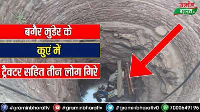 बगैर मुंडेर के कुएं में ट्रैक्टर सहित तीन लोग गिरे
