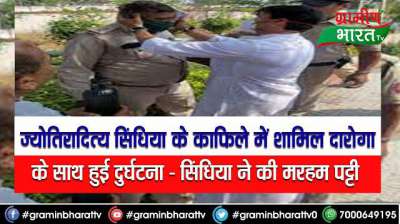 ज्योतिरादित्य सिंधिया के काफिले में शामिल दारोगा के साथ हुई दुर्घटना - सिंधिया ने की मरहम पट्टी