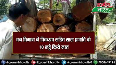 वन विभाग ने पिकअप सहित साल प्रजाति के 10 लट्ठे कियें जब्त