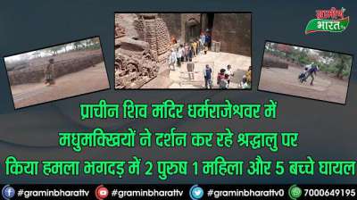 प्राचीन शिव मंदिर धर्मराजेश्वर में मधुमक्खियों ने दर्शन कर रहे श्रद्धालु पर किया हमला