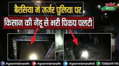 बैरसिया में जर्जर पुलिया पर किसान की गेंहू से भरी पिकप पलटी