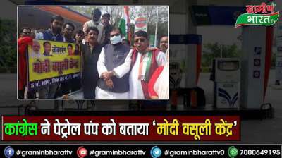 कांग्रेस ने पेट्रोल पंप को बताया “मोदी वसूली केंद्र#bhopal #madhyapradesh #inc