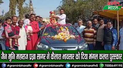 #SHAMGADH #MANDSAUR #MANGALKALASH जैन मुनि महाराज प्रज्ञा सागर ने कैलाश भावसार को दिया मंगल कलश पुरस्कार
