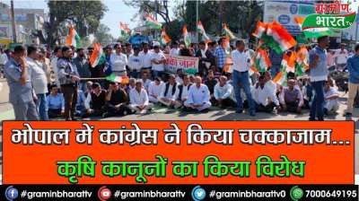 भोपाल में कांग्रेस ने किया चक्काजाम कृषि कानूनों का किया विरोध