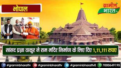 सांसद प्रज्ञा ठाकुर ने राम मंदिर निर्माण के लिए दिए 1,11,111 रुपए#BHOPAL #RAMMANDIR #AYODHYA