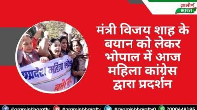 मंत्री विजय शाह के बयान को लेकर भोपाल में आज महिला कांग्रेस द्वारा प्रदर्शन