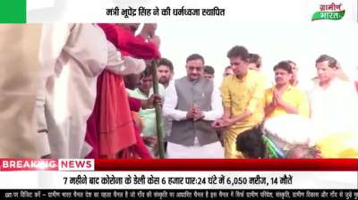 बागेश्वर धाम के बहेरिया में प्रस्तावित कथास्थल पर धर्मध्वजा स्थापित