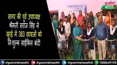 सागर की पूर्व उपाध्यक्ष श्रीमती सरोज सिंह ने खुरई में 383 छात्राओं को निःशुल्क साईकिल बांटी