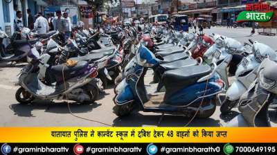 यातायात पुलिस ने कान्वेंट स्कूल में दबिश देकर 48 वाहनों को किया जप्त