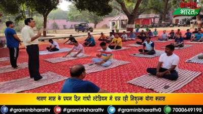 श्रावण मास के प्रथम दिन गांधी स्टेडियम में चल रही निशुल्क योगा क्लास