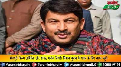 भोजपुरी फिल्म अभिनेता और सांसद मनोज तिवारी निकाय चुनाव के प्रचार के लिए सागर पहुंचे