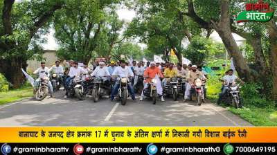 बालाघाट के जनपद क्षेत्र क्रमांक 17 में चुनाव के अंतिम क्षणों में निकाली गयी विशाल बाईक रैली