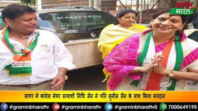 सागर में कांग्रेस मेयर प्रत्याशी निधि जैन ने पति सुनील जैन के साथ किया मतदान