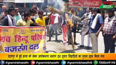 उदयपुर में हुई हत्या को लेकर अशोकनगर बजरंग दल द्वारा जिहादियों का पुतला दहन किया गया